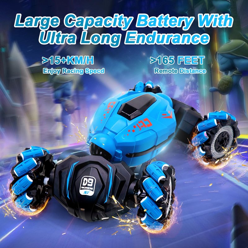 COUOMOXA Stunt Car Sensing – Perfect for Endless Fun and Action The COUOMOXA Stunt Car offers an exhilarating driving experience with its 2.4GHz remote control, allowing kids to perform incredible stunts, spins, and drifts. Whether indoors or outdoors, the car’s advanced gesture-sensing technology makes it easy to control, offering hours of non-stop entertainment. The car is designed to tackle a variety of terrains, making it the ultimate vehicle for adventurous kids. Its fast speed, powerful motor, and rechargeable battery make it ideal for long-lasting play and excitement. Perfect for kids who love racing, stunts, and off-road exploration, this RC car brings action and fun to any environment. Perfect for Boys and Girls Ages 6-12 – Ideal Gift for Young Racers This remote-controlled stunt car is designed for children aged 6-12 who crave action, adventure, and fun. Whether they’re new to RC toys or seasoned racers, this car provides a thrilling challenge for all skill levels. The intuitive controls, durable design, and speed make it the perfect gift for any young enthusiast, allowing them to race, drift, and perform stunts with ease. Whether it's for a birthday, Christmas, or any special occasion, the COUOMOXA Stunt Car is sure to impress both kids and parents. Designed for Indoor and Outdoor Play – Perfect for Backyard, Playground, and More The COUOMOXA Stunt Car is made for both indoor and outdoor play, making it versatile for all kinds of adventures. Kids can race it through the backyard, perform stunts at the park, or take it on an off-road adventure at the beach or in the sand. The all-terrain wheels allow it to tackle various surfaces with ease, from smooth floors to rocky trails and sandy hills. This makes it an excellent choice for active kids who love to explore and play in different environments, whether it's a family gathering, a fun outdoor competition, or a day at the park.