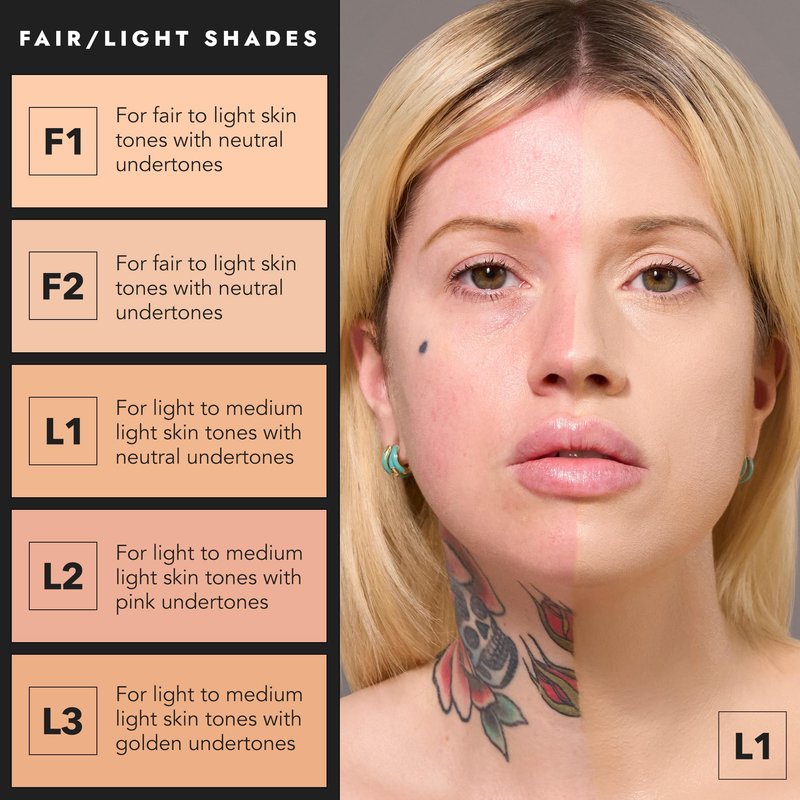 - FULL COVERAGE FOR ALL: Get total control and total coverage for every complexion. F1 is suitable for fair to light skin with neutral undertones