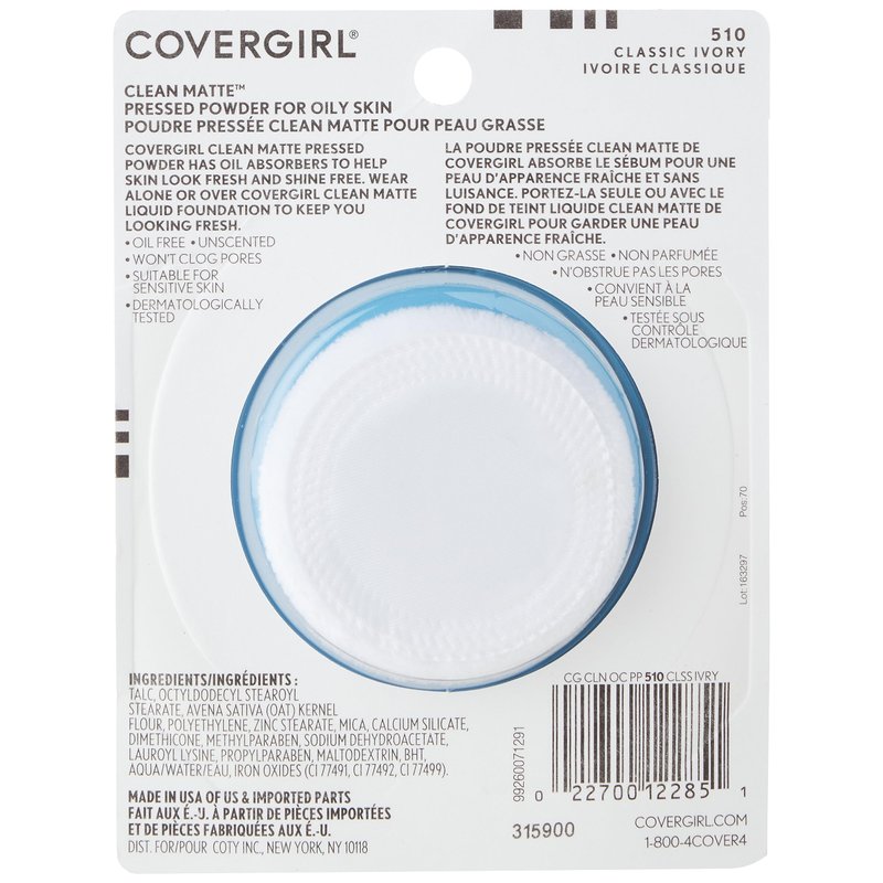 COVERGIRL Clean Matte Pressed Powder, Oil Control Powder, 1 container, .35 Fl Oz, Face Powder, Oil Free Loose Powder, Matte Finish, Lightweight, Shine Free Formula, Leaves Skin Smooth and Clean