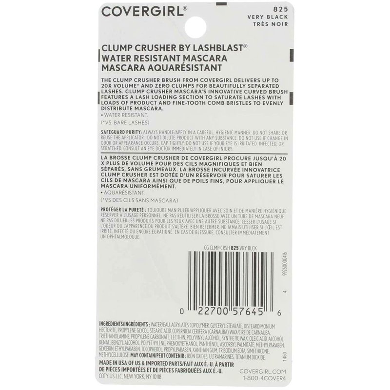 CoverGirl LashBlast Clump Crusher Mascara, Water Resistant, Very Black 825 - Pack of 3