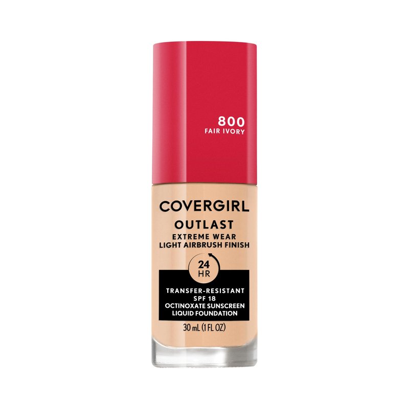 Covergirl Outlast Extreme Wear 3-in-1 Full Coverage Liquid Foundation, SPF 18 Sunscreen, Fair Ivory, 1 Fl. Oz.