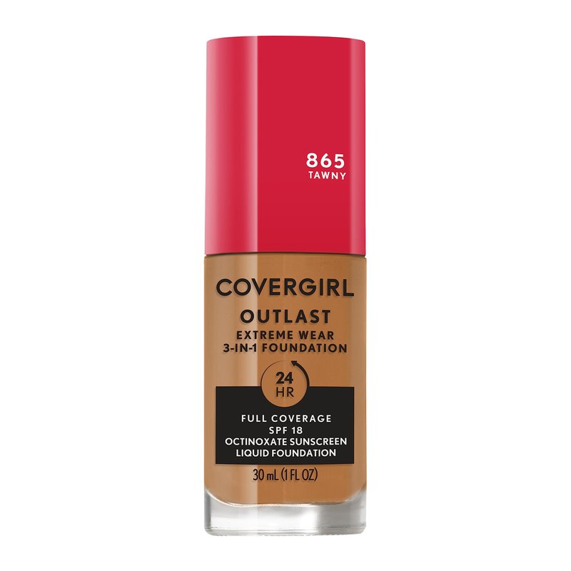 Covergirl Outlast Extreme Wear 3-in-1 Full Coverage Liquid Foundation, SPF 18 Sunscreen, Tawny, 1 Fl. Oz.