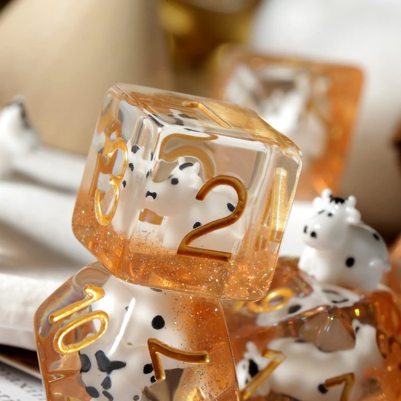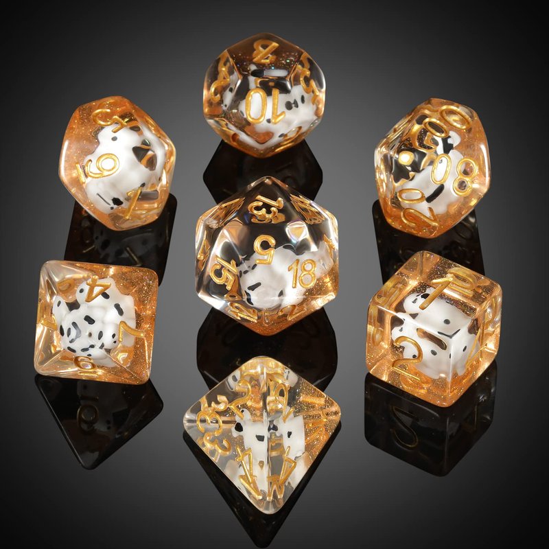 Cow DND Dice, DNDND 7PCS Resin D&D Die with Velvet Bag for Dungeons and Dragons Role Playing Games and Tabletop Games(Cow