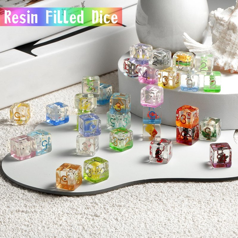 - Materail:The environmentally resin material is hand-made, the little cows are adorable and very visible inside the dice,super cute and fun.