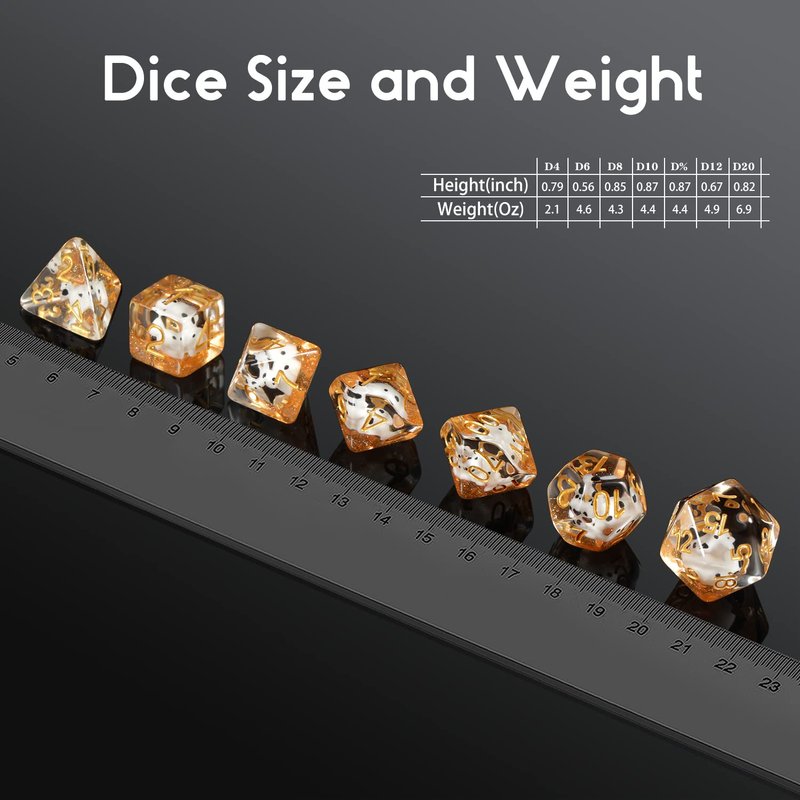 - Cow DND Dice: One set cow dnd dice total 7 pcs including D4, D6, D8, D10, D12, D20 and D%.
