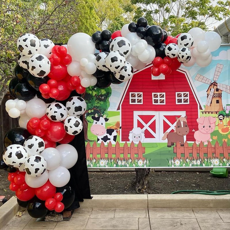 Cow Party Decorations-Cow Balloon Garland Arch Kit-Red Black White Balloons for Cowboy Cowgirl Party Decorations Baby Shower Animal Birthday Party Suppllies