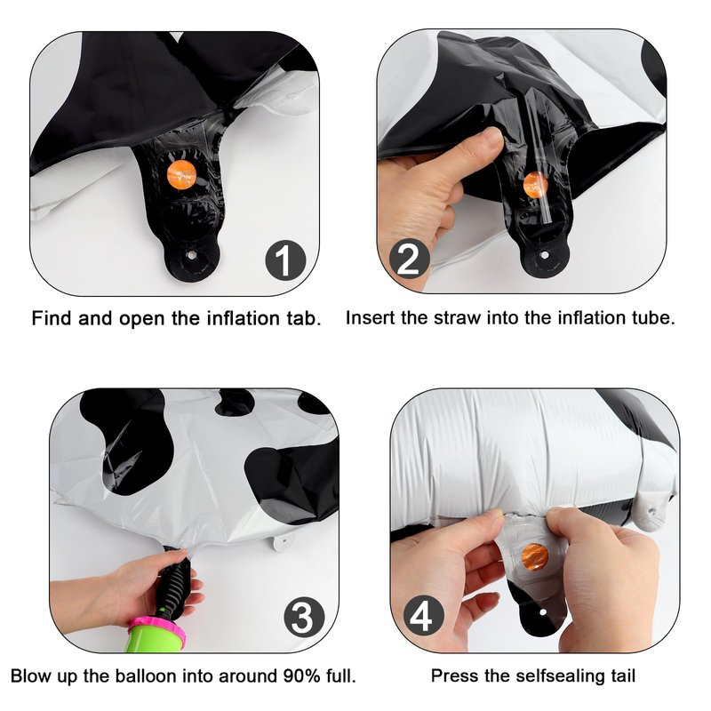 - 【High Quality Cow Balloons】- Our cow print balloons are thick, non-toxic and odorless, with high quality embossing technology and neat edges that are less likely to explode and leak. The top hole can be strung or hung, and can be deflated with a straw for easy reuse of the balloon. Suitable for filling with 90% helium or air. Just take these cow balloons home!