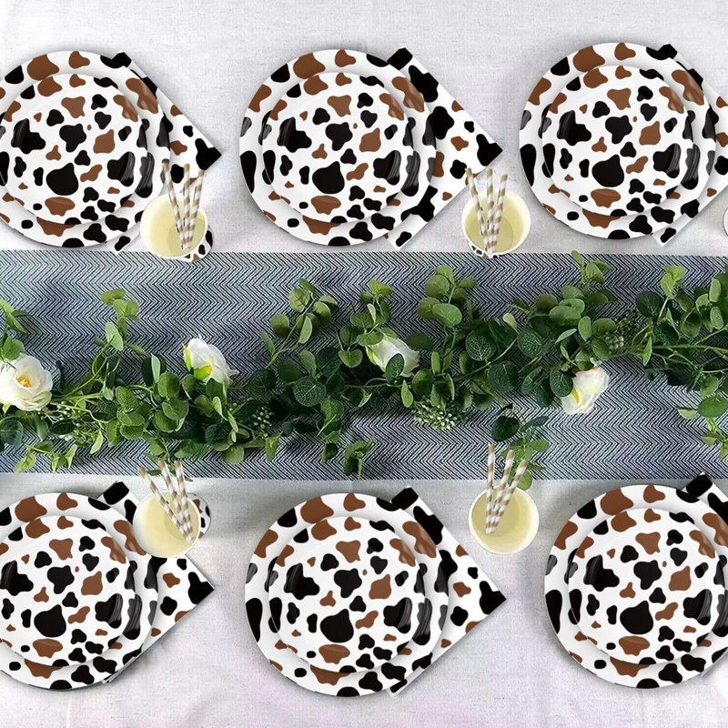 - Cow Print Plates and Napkins:Cow print Party Supplies at the party are made of thick cardboard. Cow party tableware not only add fun and brilliance to your party, but also greatly reduce your post party cleaning time, allowing you to spend more time enjoying the party with friends