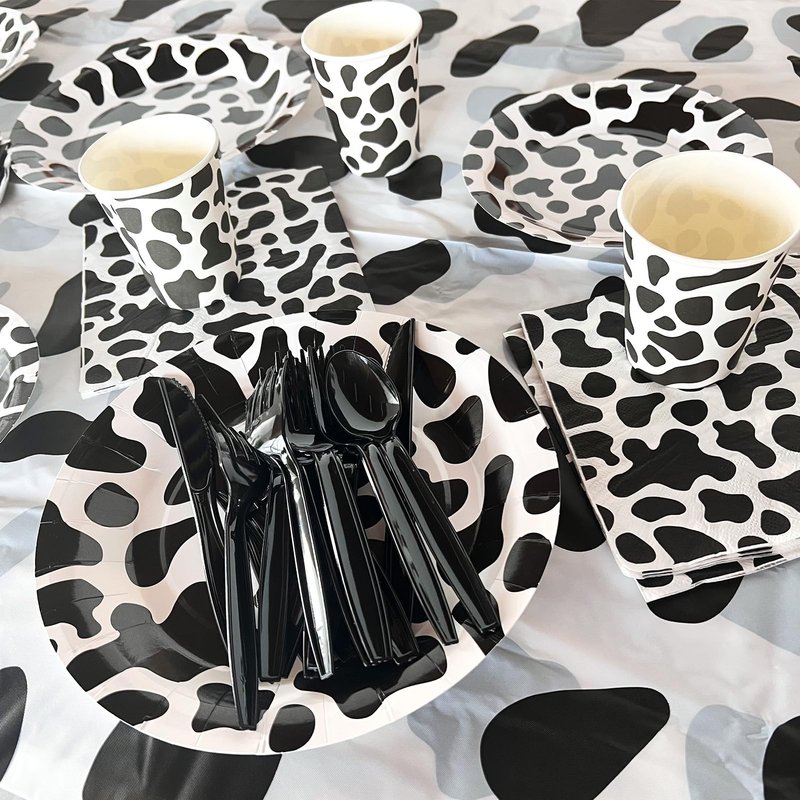 - Cow Print Party: Cow Print disposable Tablewares is the perfect choice for almost any occasion. suitable for your cow themed party, cow print farm animal barn theme party, cow birthday party, weddings, bridal showers, baby showers, kitchen table decoration, picnics, birthday party etc., outdoor use, picnic, camping or hiking.