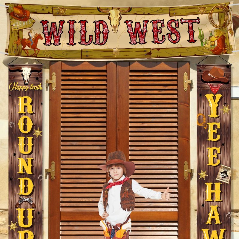 - As Wild West Party Decorations: the "Wild West" banner party decoration is amazing to boost atmosphere for holding western-themed children birthday party, adult cowboy party, yeehaw western scene setters