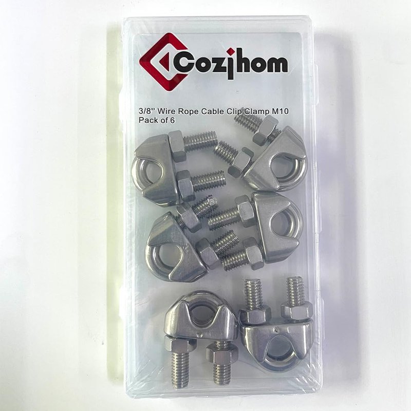 Cozihom 3/8 Inch M10 Wire Rope Cable Clip Clamp, 304 Stainless Steel, U Bolt Saddle Fastener, 6 Packs