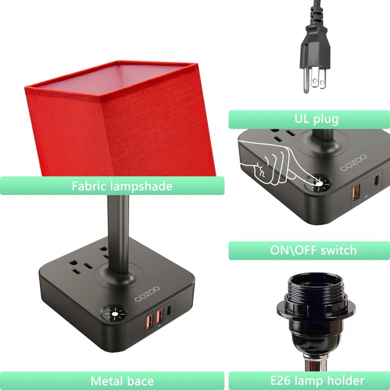 - Minimalist Design:COZOO nightstand lamp with traditional press switch,simpler and more durable to use.it comes with sleek fabric shade and the Fireproof plastics power base, creating a warm and cozy feelings for your home. Perfect for end table,dinning table,coffee table, bed,office, bedroom,guest room, den, nursery, meditation room.This bedside desk lamp can be used with standard e26/e27 led bulbs (included ).