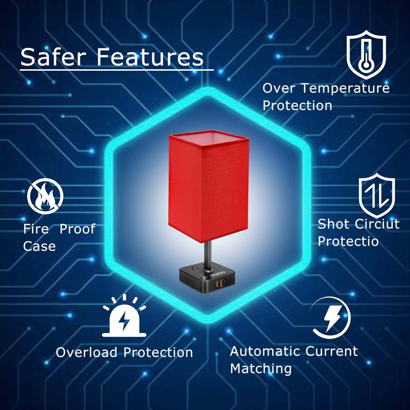 - 3 USB Ports 2 AC Outlets:The base of this decorative and unique desk and table bedside lamp contains 3 USB port and 2 outlets power strip so that you can charge your mobile phones, tablets, laptops, and other electronic devices. The USB port functions regardless of whether the lamp is on or off. It will look beautiful in any contemporary home or office.