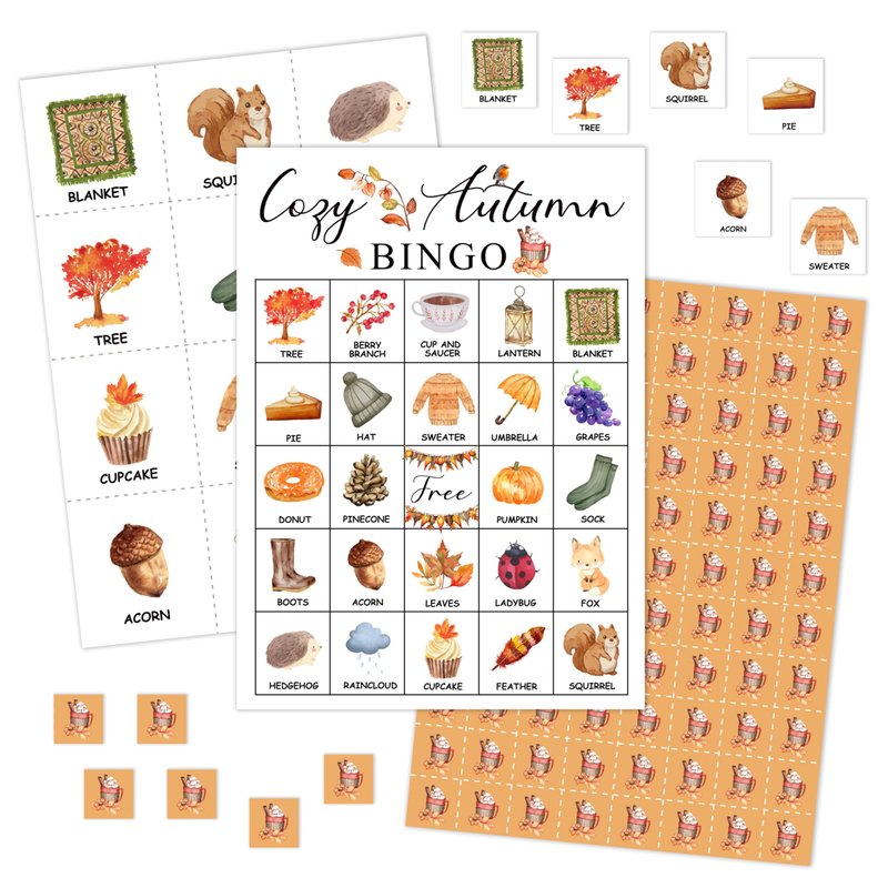 Cozy Autumn Bingo Games Cards, Fall Bingo Game Set, Thanksgiving Party Bingo Game, Autumn Bingo Supplies for Adults Family Friends, Thanksgiving Party Holiday Decorations -13
