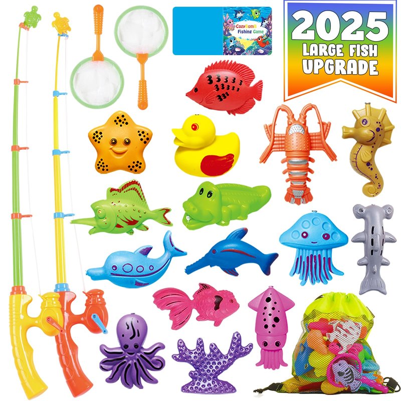 CozyBomB Magnetic Fishing Toys Game Set for Kids | Water Table Bathtub kiddie Pool Party with Pole Rod Net, Plastic Floating Fish-Toddler all Size Color Ocean Sea Animals age 2 3 4 5 6 Year