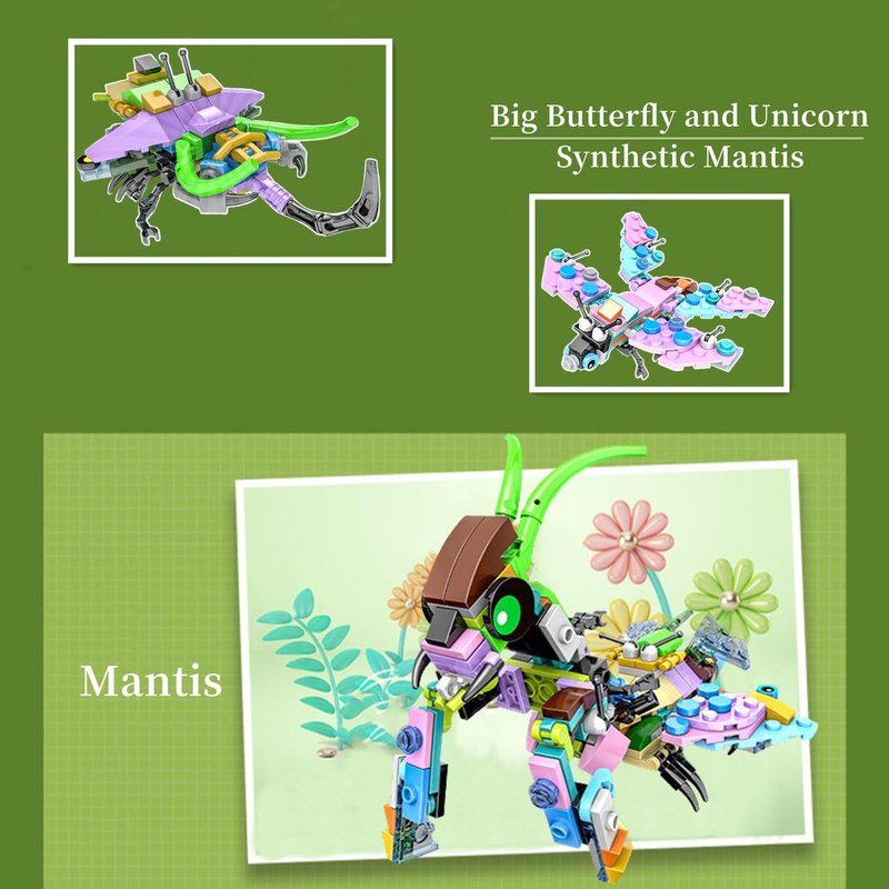 - 【10 IN 1】The set of bug building blocks toys for kids comes with ants, butterflies, moths, ladybugs, dragonflies, beetles, bees, beetles, flies, and grasshoppers. They can not only be assembled into 10 different shapes of sets but also combined to build a mantis.