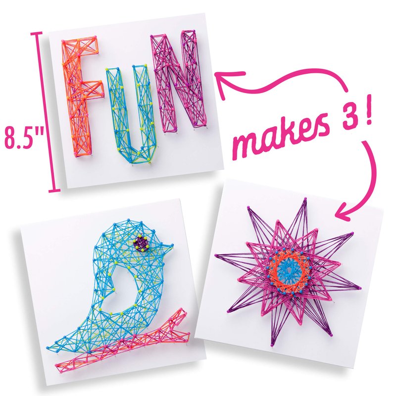 - COMPLETE ARTS & CRAFTS KIT FOR TWEENS AND TEENS—The String Art Kit includes detailed instructions, 3 different 8.5” pre-printed sturdy foam canvases, 60 yards of thread, and 170 pins. Everything you need for three fun art projects!