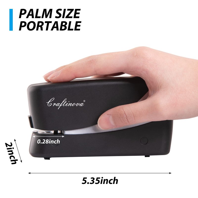 - PALM SIZE:The size of this electric stapler is suitable for people of any age. It is not as bulky as most electric staplers are. It can be easily put into your backpack and can be carried with you. In addition, it can use batteries, which makes it possible to bind at any time and anywhere.