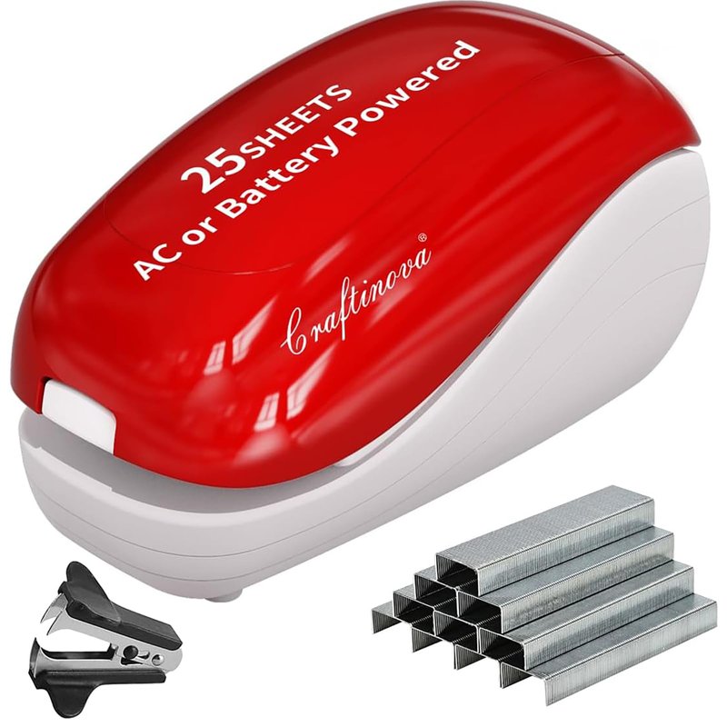 Craftinova Electric Stapler-Red,Including 2000 Staples and 1 Staple Remover, Suitable for Palm Size and high Comfort,25 Sheet Capacity, AC Adapter or Battery Powered,Battery not Included
