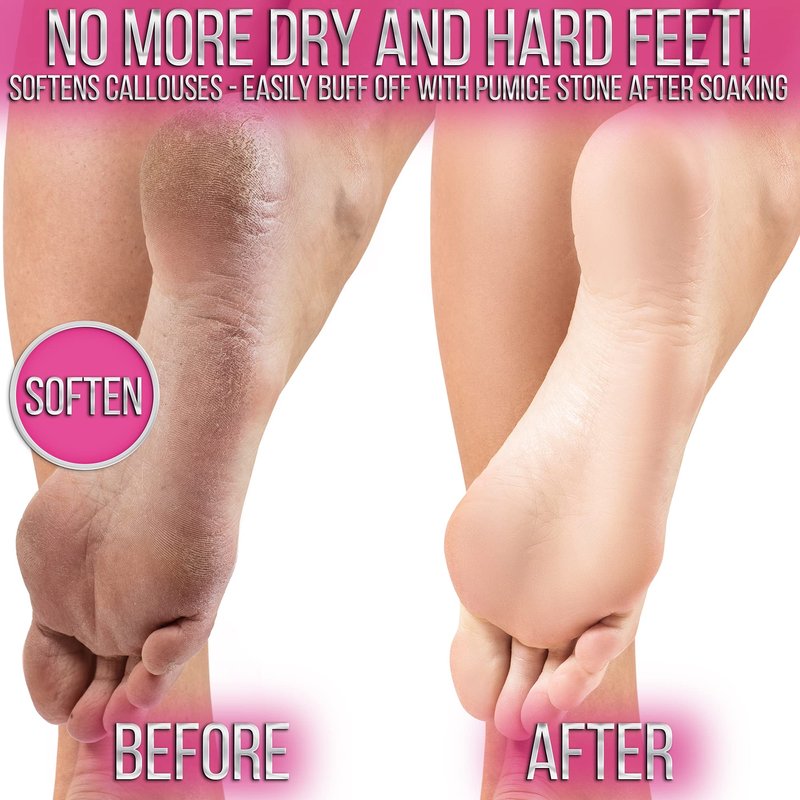 - NO MORE DRY, CRACKED FEET! Our pedicure foot soak for dry cracked feet contains softening foot soak crystals that act as a callus remover – SOFTENING them in the foot jelly to be easily buffed away afterwards with a pumice stone making you have SOFT KISSABLE FEET that are ready to strut and be seen! Our spa gel pack is like a dream crystal gel spa! Our jelly pedicure (pedicura) soak set is superior to boring foot bath salt that leave feet wrinkly & do not soften.