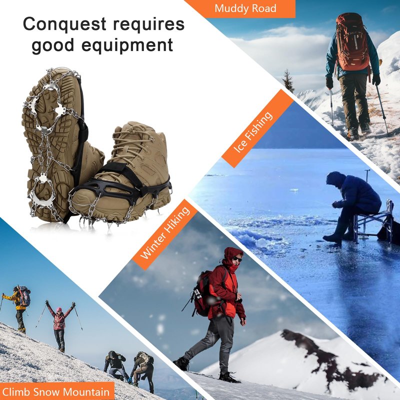 - MULTIPLE USES: Suitable Not Only For Outdoor Ice And Snow But Also For The City To Use During The Snowy Weather, Particularly Suitable For The Elder and Kids. Reduce The Risk Of Injury From Slips And Falls When Walk On Ice, Snow, Mud And Wet Grass, Or Other Poor Conditions.