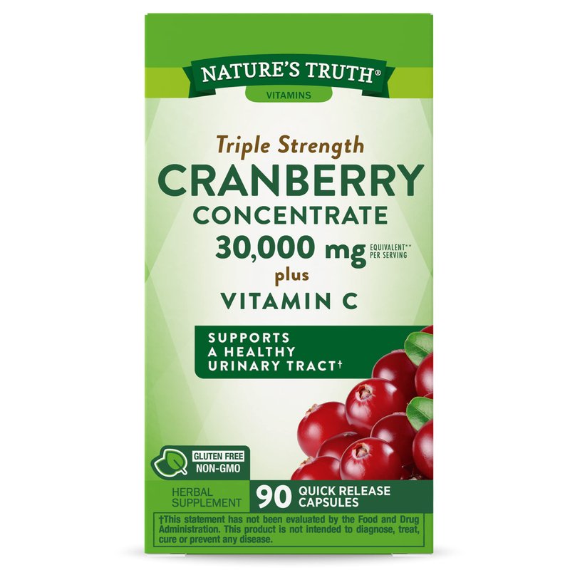 Cranberry Concentrate Capsules 30,000mg | Plus Vitamin C | Non-GMO & Gluten Free Supplement | Triple Strength Support Pills | by Nature's Truth