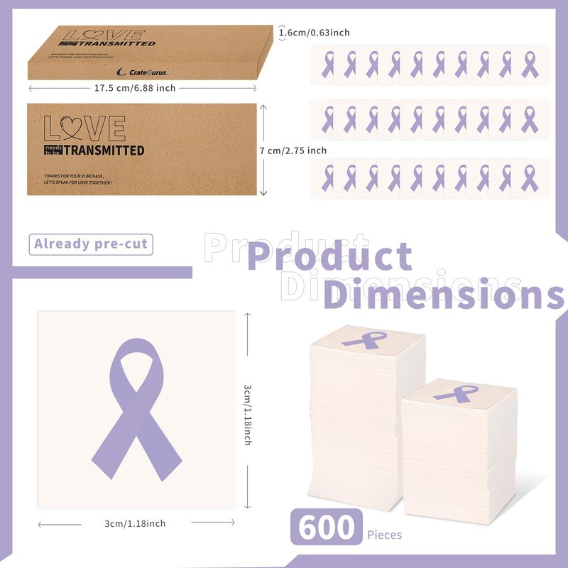 - Abundant for All Needs: This package included 600 pieces lavender cancer ribbon tattoos, make it perfect for bulk lavender awareness products, survivor gifts, and even fundraising items with family and neighbors.