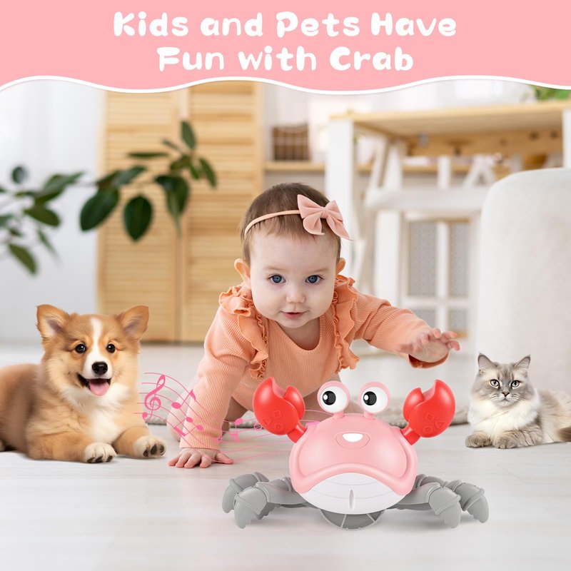 - Help babies crawl baby toys: The crawling crab baby toy helps babies strengthen neck and upper body muscles while developing key skills like head lifting and rolling over. Crab toys for babies engaging movement encourages crawling, boosting muscle coordination and motor skills. Perfect for tummy time, this dancing crab makes physical development fun and effective