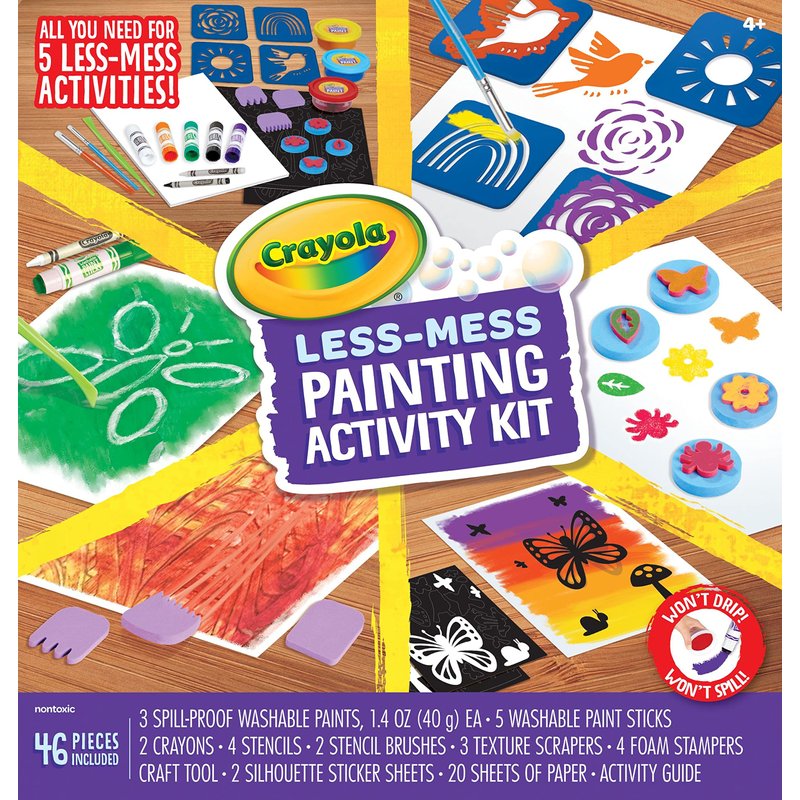 Crayola Less Mess Painting Activity Kit (46pcs), Kids Art Set, Washable Kids Paints, Gifts for Kids, Ages 4+