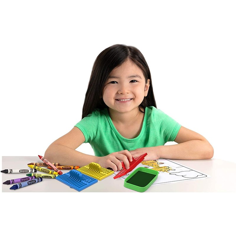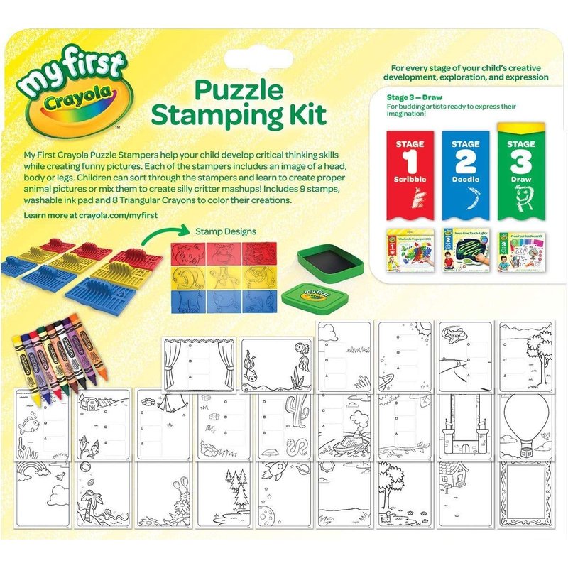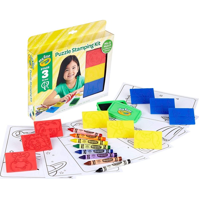 - CRAYOLA STAMPERS FOR KIDS: Features 9 animal stampers, 1 washable black ink pad, 8 washable crayons, and 24 coloring pages.