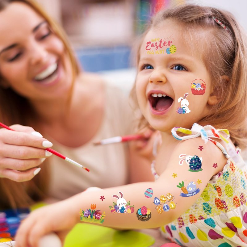 - 【Perfect Party Accessory】A fun addition to any easter party.Each sheet measures 8.25 " x 6 " creating the perfect size tattoos!These cute Easter temporary tattoos feature classic Easter themed designs such as Easter bunny, Easter eggs, bunnies, flowers and more