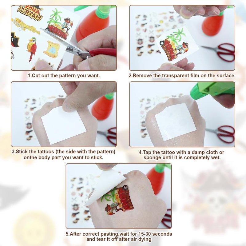 - 【Perfect Party Accessory】a fun addition to pirate theme party decoration! Each sheet measures 8.25 " x 6 " creating the perfect size tattoos!