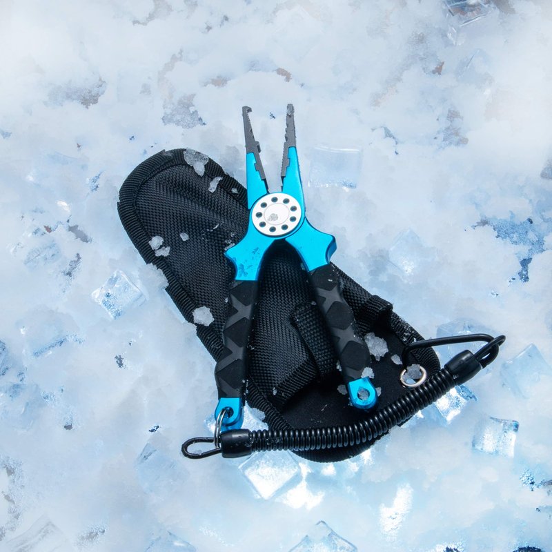 CRAZY SHARK Professional Saltwater/Freshwater Fishing Pliers Hook Remover Fishing Line Cutters with Sheath and Lanyard (Blue.T)