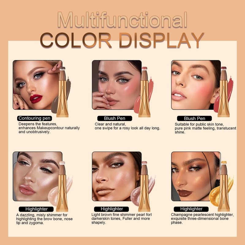 - 【New Generation Contour Liquid】Wanna sculpt under the chin?Wanna glow?Try this new upgrade contor stick!Available in 6 shades,this makeup contour kit with shades that bronzer and glow give you a more youthful appearance.Meet your diverse needs~