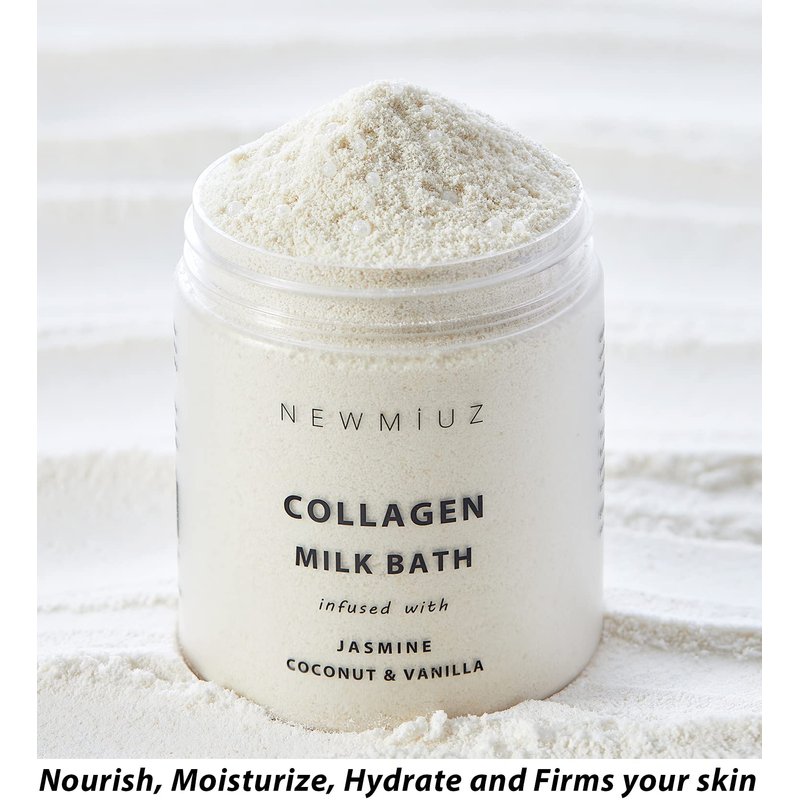 - Anti-Aging Collagen Milk Bath - New Miuz's luxurious coconut milk bath soak nourishes and hydrates skin for younger, firmer, and silky-soft skin. Our natural, moisturizing milk bath soak contains multi-vitamins beads excellent for eczema relief.