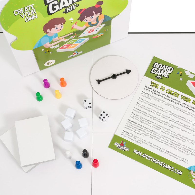 - You Make the Game: Tired of all your traditional board games? It’s time to create your own with the Apostrophe Games build your own game kit! Featuring a wide range of accessories and game supplies, you can build a unique board game that plays by your rules!
