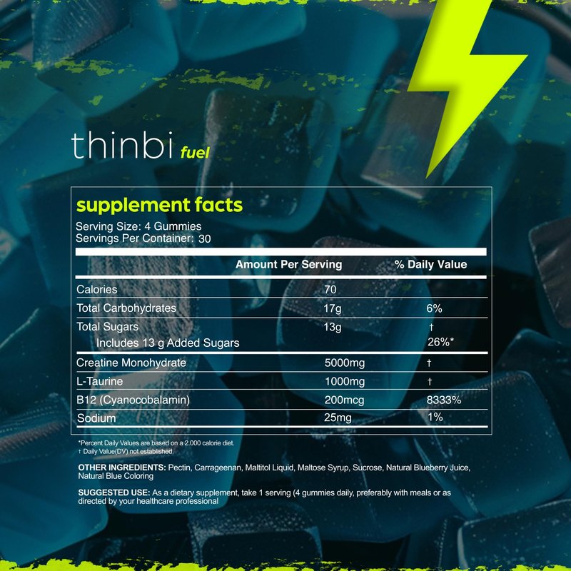 Creatine Monohydrate Gummies Complex 6200mg for Men & Women - 120 Gummies Advanced Formula W/L-Taurine + Vitamin B12 for Muscle Strength, Muscle Builder, Energy Boost, Pre-Workout Supplement - Thinbi