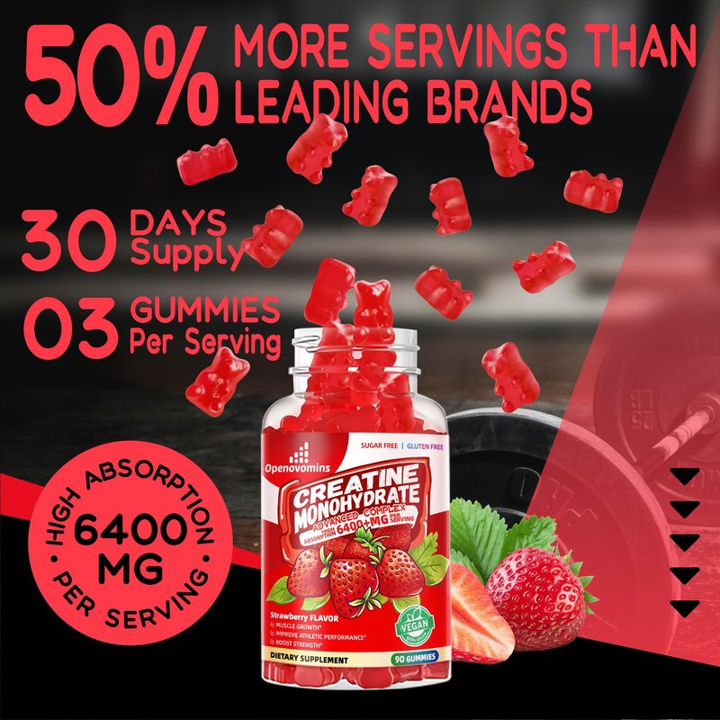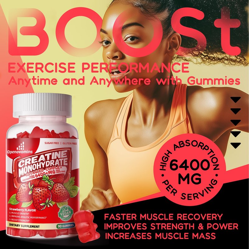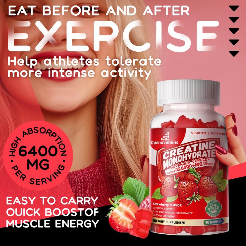 - [ Key Benefits]: Our Creatine monohydrate gummies are an easy way to consume, 3 gummies per serving, you can take it at any time, any place. It improved muscle strength, muscle recovery, improve endurance and energy boost. Suitable for a variety of users, and enjoyable taste.