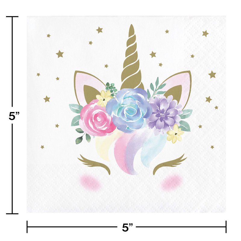 Creative Converting 343830 Unicorn Baby Shower Beverage Napkins, 5", Multi-color