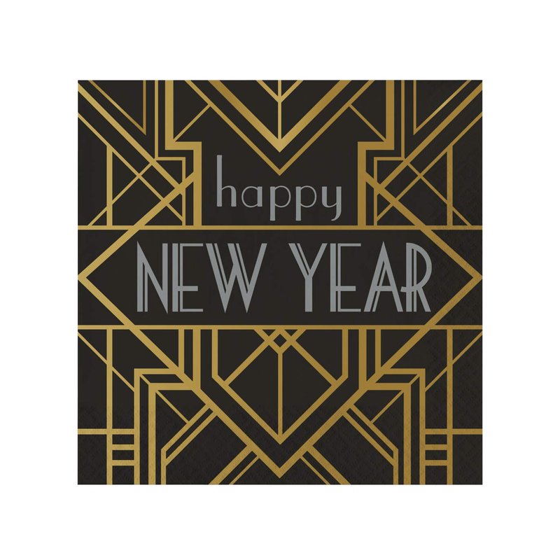 Creative Converting 346109 Happy New Year Lunch Paper Napkins, Black/Gold, 6.5", 16 Ct.