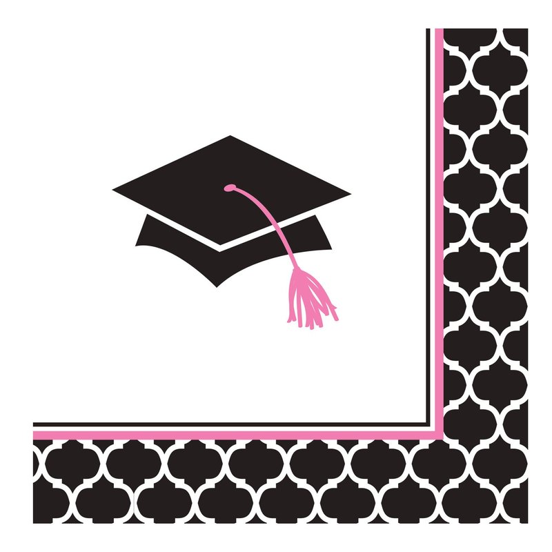 Creative Converting 36 Count Paper Beverage Napkins, Glamorous Grad, Black/White/Pink