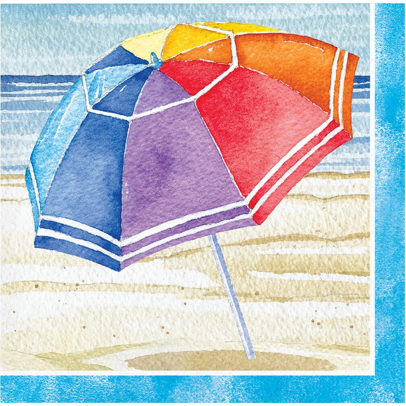 - These 2-ply napkins feature a beach scene with a colorful umbrella