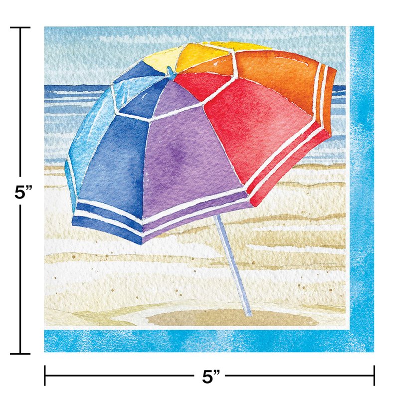 Creative Converting Beach Umbrellas Beverage Napkins, 5", Multi-color