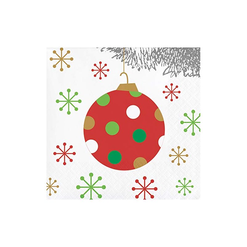 Creative Converting Bright Christmas Tree Beverage Napkins, White