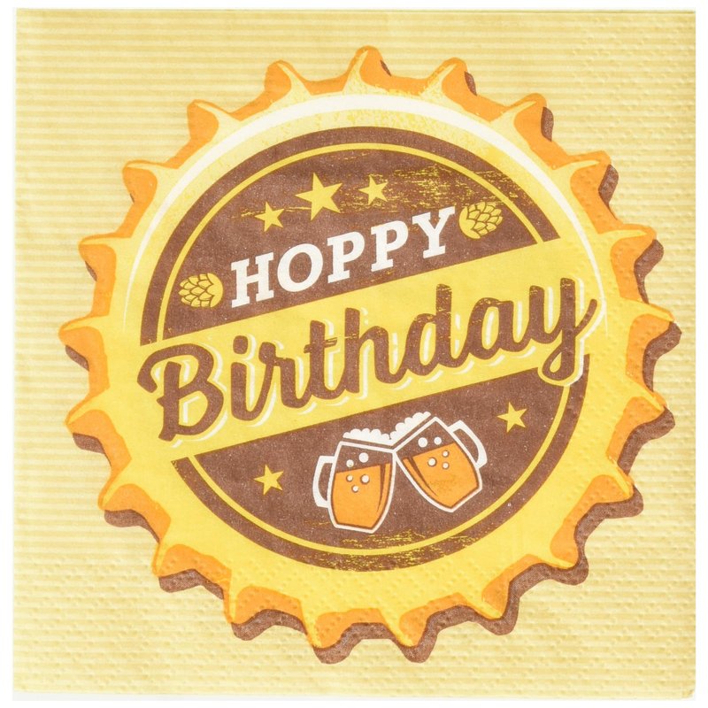 Creative Converting Cheers Hoppy Birthday Paper Beverage Napkins, 1 Count (Pack of 16), Brown