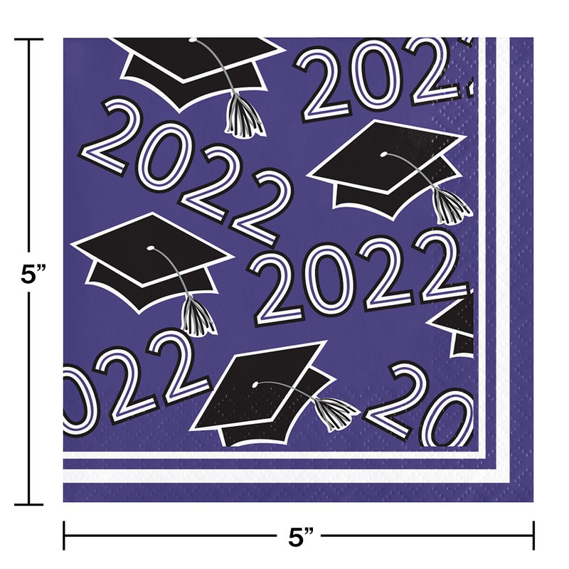 Creative Converting Class of 2022 Purple Beverage Napkins, 5"