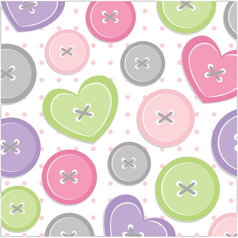 - Pink and purple buttons on a white background; great for a baby shower