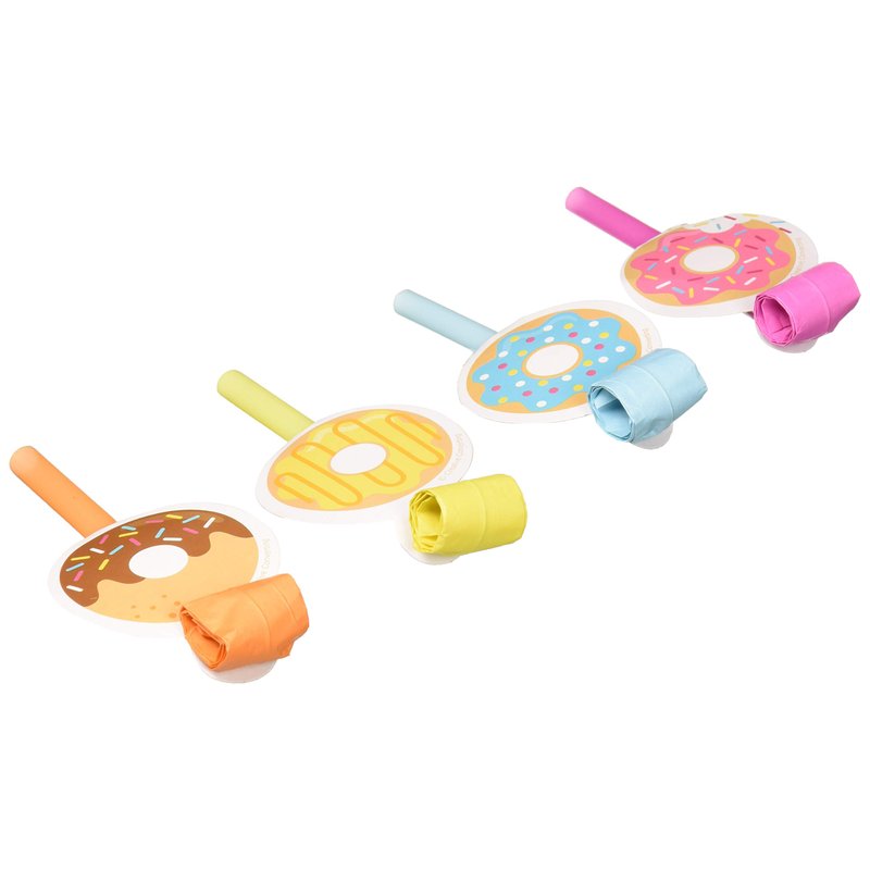 - 8 Donut Time Party Blowers. Blowouts measure 5.25" x 2.55". Juvenile birthday party favors are made of paper