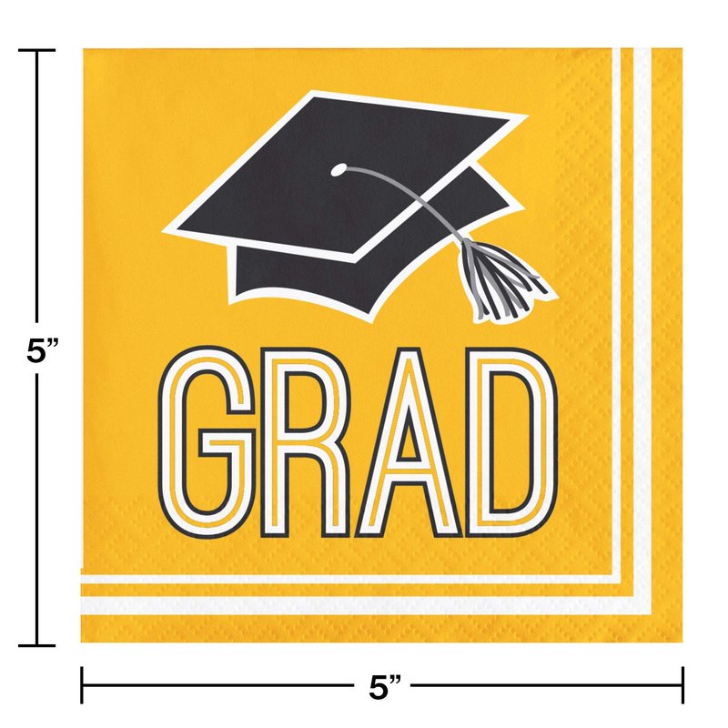 Creative Converting Graduation School Spirit Yellow Beverage Napkins, 5"
