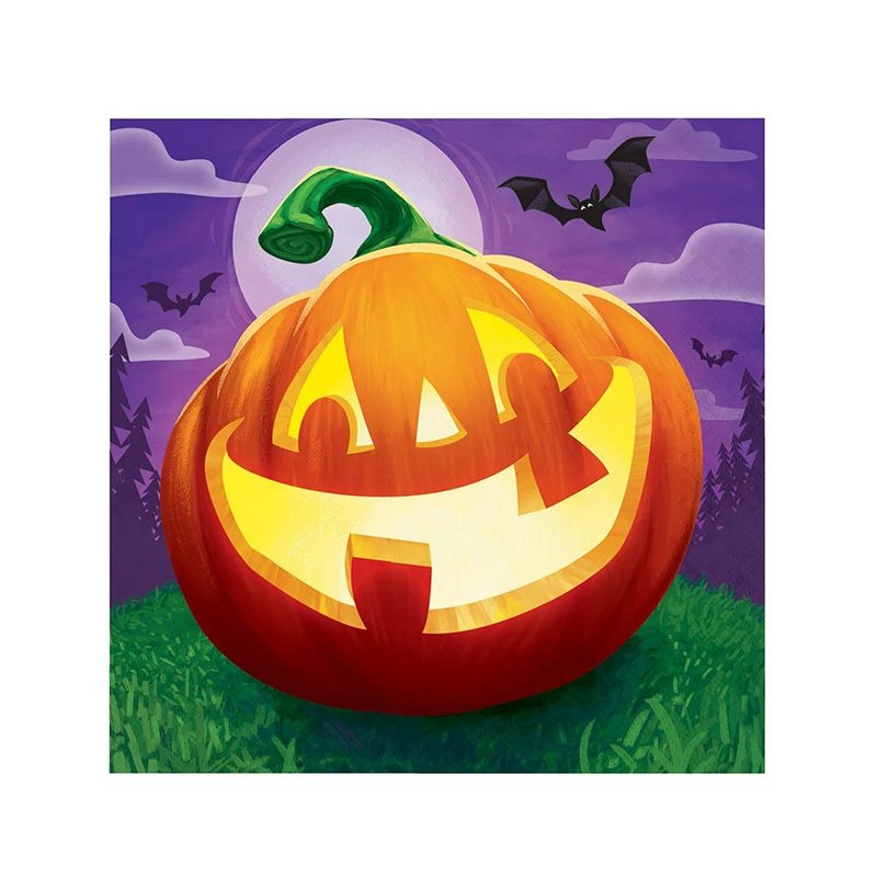 - Napkins feature friendly jack-o-lantern design